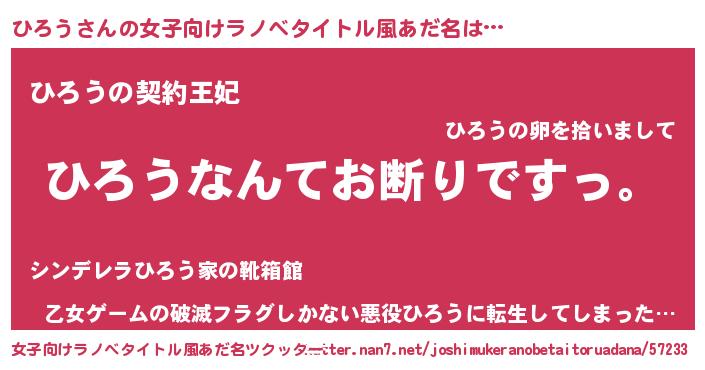 | 男性向けラノベタイトル風あだ名 | 『魔法科高校のひろう』『緋弾のヒロウ』 |