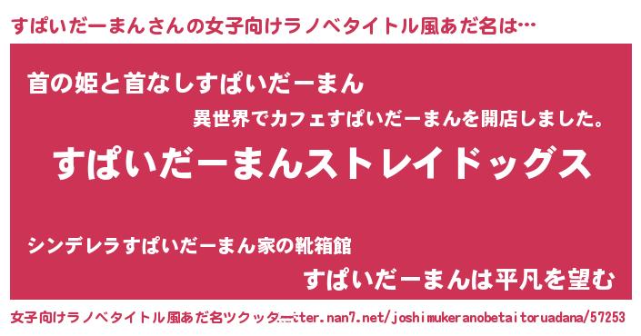 | 意味不明あだ名 | 『自称すぱいだーまん』 |