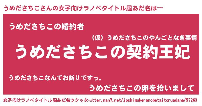 | 男性向けラノベタイトル風あだ名 | 『うめださちこという概念が存在しない退屈な世界 』 |