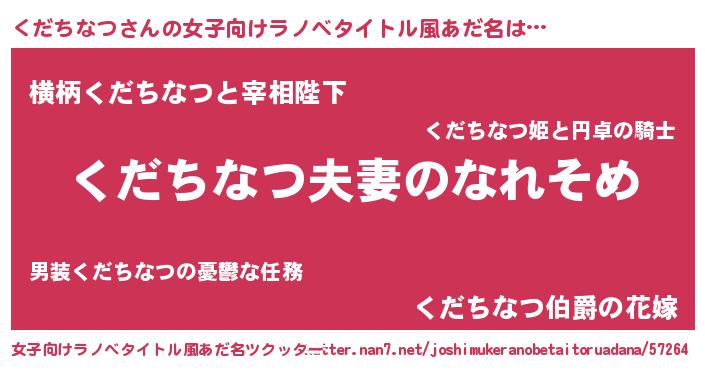 | 男性向けラノベタイトル風あだ名 | 『おまえをオタクにしてやるから、俺をくだちなつにしてくれ! 』 |