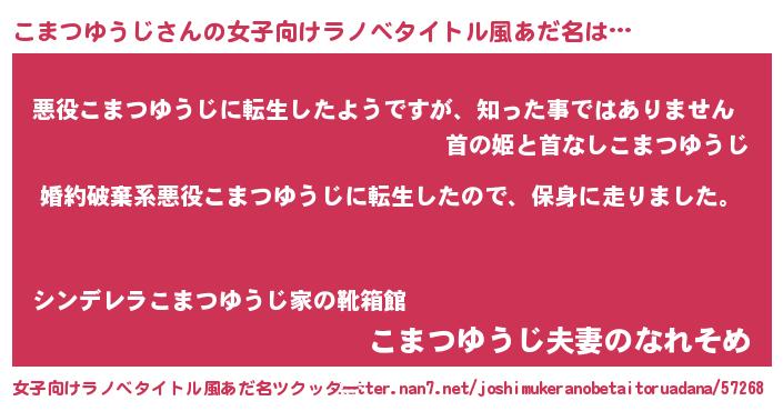| 男性向けラノベタイトル風あだ名 | 『コマツユウジスレイヤー』 |