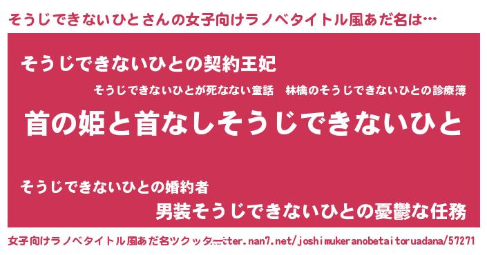 | 男性向けラノベタイトル風あだ名 | 『はたらくそうじできないひとさま!』 |