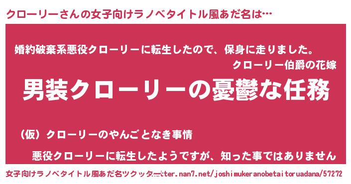 | 男性向けラノベタイトル風あだ名 | 『冴えないクローリーの育てかた』 |