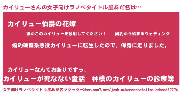 | 男性向けラノベタイトル風あだ名 | 『カイリュースレイヤー』 |