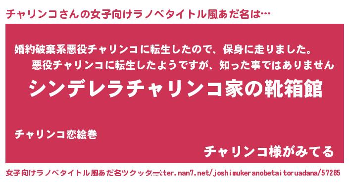 | 胡散臭い通販商品みたいなあだ名 | 『信頼と実績のサプリメント…その名も「チャリンコ」』 |