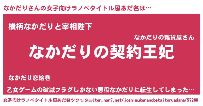 | 胡散臭い通販商品みたいなあだ名 | 『来世でも幸せになれる水素水…その名も「なかだり」』 |