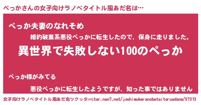 | 胡散臭い通販商品みたいなあだ名 | 『絶対に幸福をもたらす健康食品…その名も「ぺっか」』 |