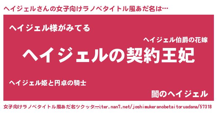 | 男性向けラノベタイトル風あだ名 | 『誰もが恐れるあのヘイジェルが、ぼくの専属メイドになるようです。』 |