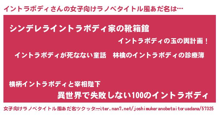 | 意味不明あだ名 | 『住所不定無職イントラボディ(2歳)』 |