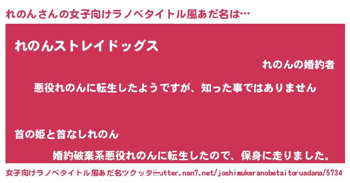 意味不明あだ名 | 『住所不定無職れのん(3歳)』『自称れのん』 |