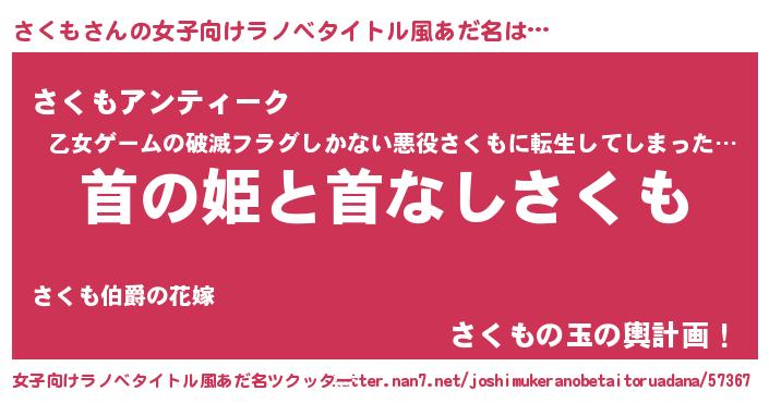 | 意味不明あだ名 | 『自称さくも』『たけのこ科さくも属』 |