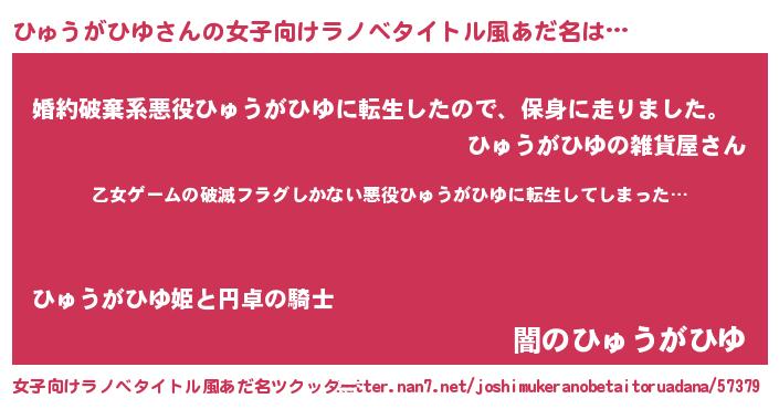 | 意味不明あだ名 | 『住所不定無職ひゅうがひゆ(85歳)』 |