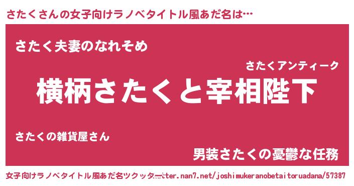 | 男性向けラノベタイトル風あだ名 | 『さたくに滅ぼされるだけの簡単なお仕事です』 |