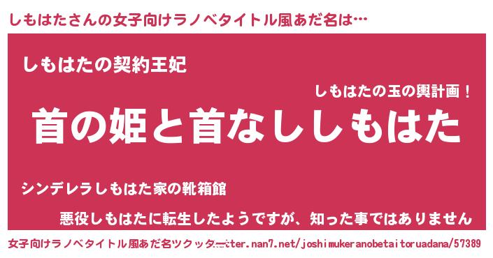 | 胡散臭い通販商品みたいなあだ名 | 『絶対に幸福をもたらす水素水…その名も「しもはた」』 |