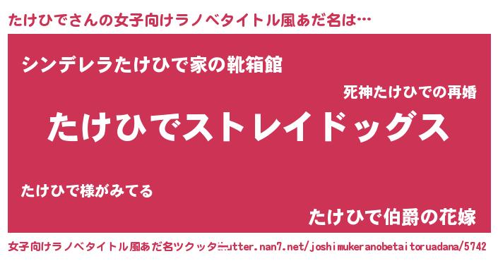 | 意味不明あだ名 | 『自称たけひで』『たけひでフォーエバー』 |
