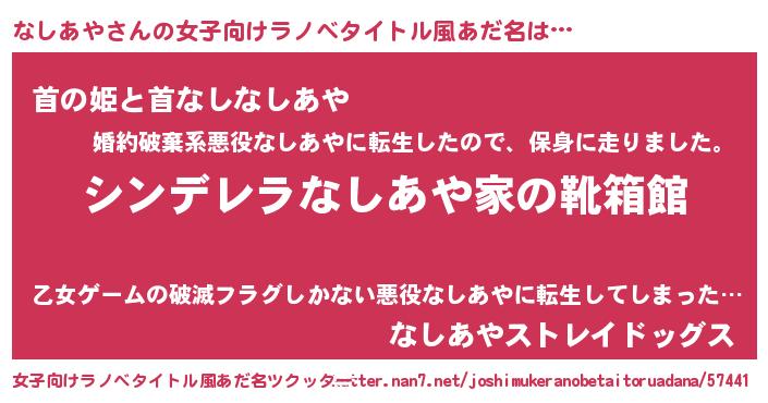 | 男性向けラノベタイトル風あだ名 | 『緋弾のナシアヤ』『ナシアヤスレイヤー』 |