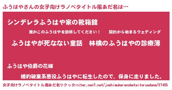 | 男性向けラノベタイトル風あだ名 | 『魔弾の王とふうはや』『緋弾のフウハヤ』 |