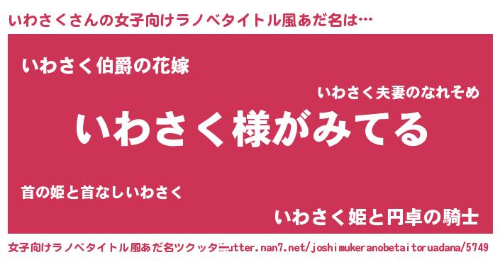 | 男性向けラノベタイトル風あだ名 | 『いわさくの嫁は女の子じゃないと思った?』 |
