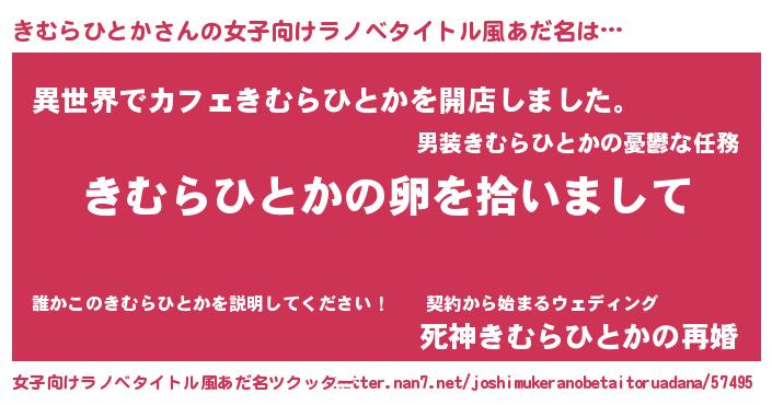 | 男性向けラノベタイトル風あだ名 | 『きむらひとかの嫁は女の子じゃないと思った?』 |