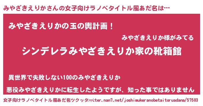 | ヘコむあだ名 | 『みやっ子』『みやざきえりか(遠い目)』 |