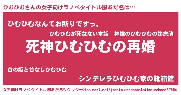 | 男性向けラノベタイトル風あだ名 | 『ノーゲーム・ノーヒムヒム』 |