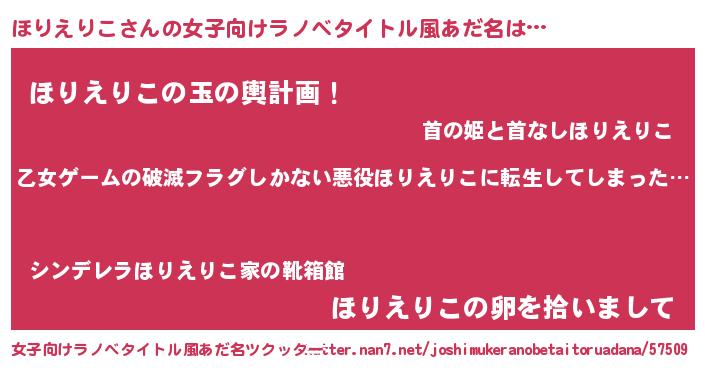 | 男性向けラノベタイトル風あだ名 | 『この素晴らしい世界にほりえりこを!』 |