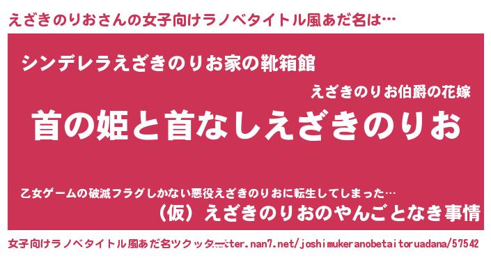| 男性向けラノベタイトル風あだ名 | 『はたらくえざきのりおさま!』 |