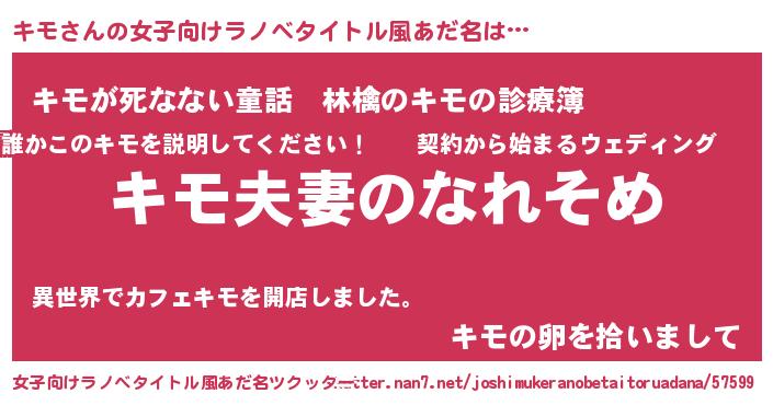 | 男性向けラノベタイトル風あだ名 | 『おまえをオタクにしてやるから、俺をキモにしてくれ! 』 |