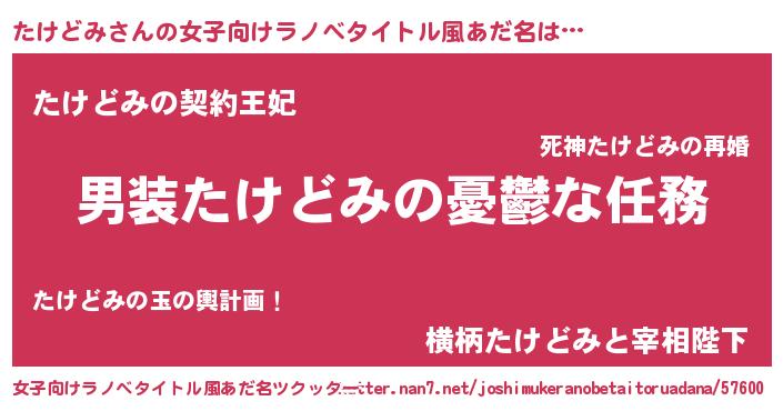 | 胡散臭い通販商品みたいなあだ名 | 『来世でも幸せになれる健康食品…その名も「たけどみ」』 |