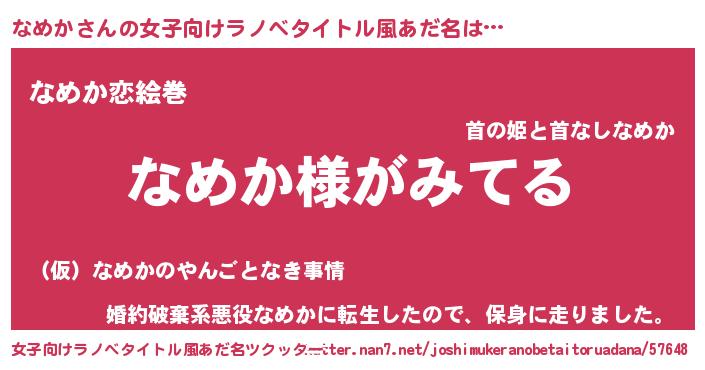 | 男性向けラノベタイトル風あだ名 | 『なめかの嫁は女の子じゃないと思った?』 |