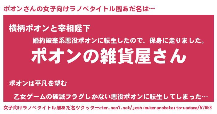 | 男性向けラノベタイトル風あだ名 | 『やはりポオンの青春ラブコメはまちがっている 』 |