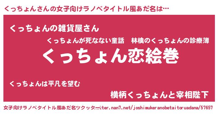 | 男性向けラノベタイトル風あだ名 | 『ノーゲーム・ノークッチョン』 |