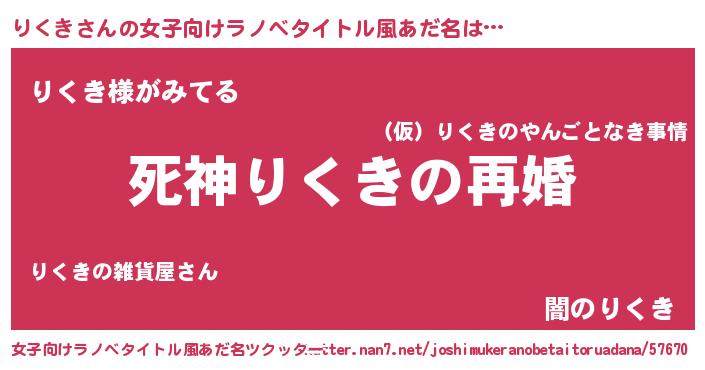 | 男性向けラノベタイトル風あだ名 | 『ノーゲーム・ノーリクキ』 |