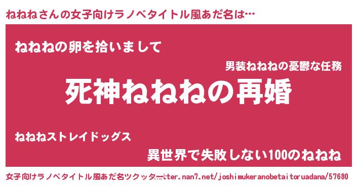 | 男性向けラノベタイトル風あだ名 | 『ノーゲーム・ノーネネネ』 |