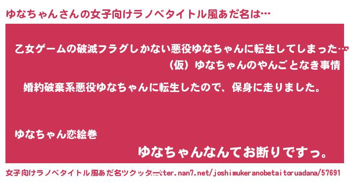 | 胡散臭い通販商品みたいなあだ名 | 『ハリウッド女優が絶賛した100年もののヴィンテージワイン…その名も「ゆなちゃん」』 |