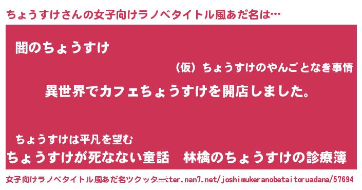 | 意味不明あだ名 | 『永久保存ちょうすけ』『自称ちょうすけ』 |