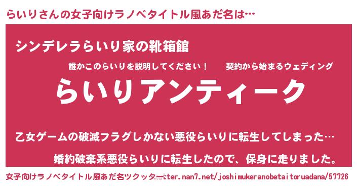| 男性向けラノベタイトル風あだ名 | 『魔法科高校のらいり』『緋弾のライリ』 |