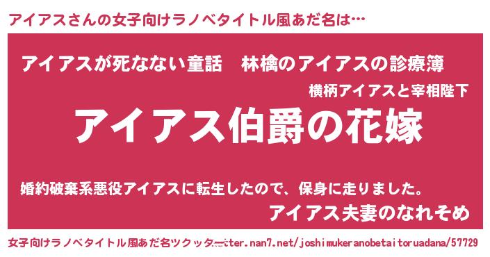 | 男性向けラノベタイトル風あだ名 | 『やはりアイアスの青春ラブコメはまちがっている 』 |