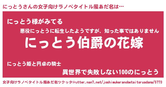 | 男性向けラノベタイトル風あだ名 | 『やはりにっとうの青春ラブコメはまちがっている 』 |