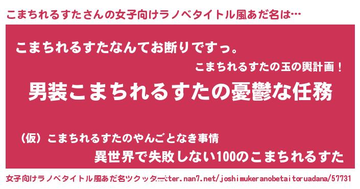 | 男性向けラノベタイトル風あだ名 | 『冴えないこまちれるすたの育てかた』 |