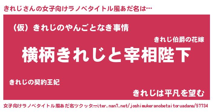 | 男性向けラノベタイトル風あだ名 | 『きれじに滅ぼされるだけの簡単なお仕事です』 |