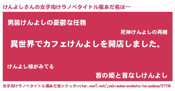 | 可愛いあだ名 | 『けんよしママ』『けーみん』 |