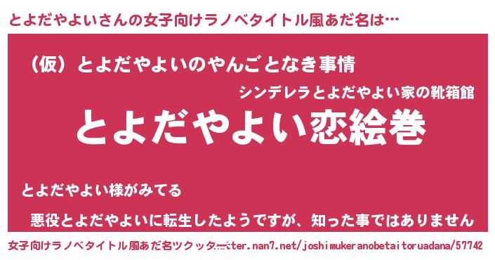 | 男性向けラノベタイトル風あだ名 | 『ノーゲーム・ノートヨダヤヨイ』 |