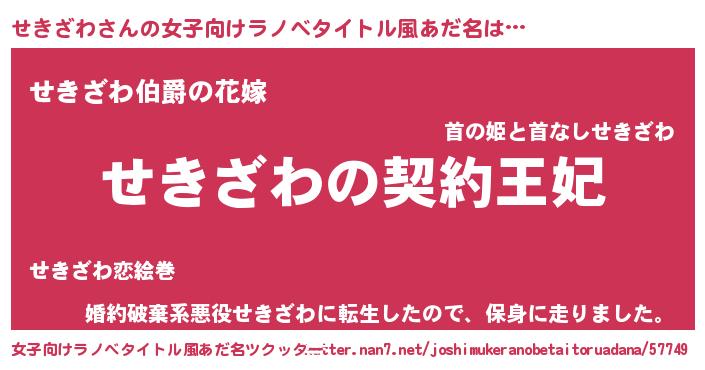 | 意味不明あだ名 | 『永久保存せきざわ』 |