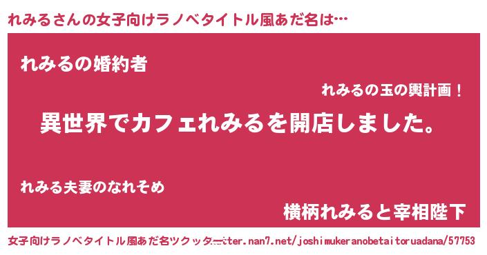 | ファンタジー風あだ名 | 『レミディッシュ』『エターナルレミルー』 |