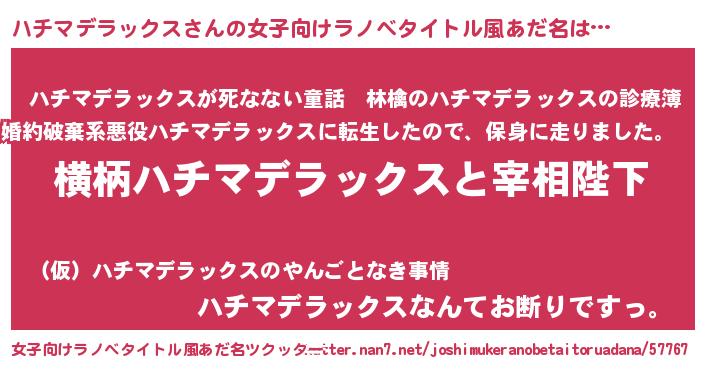 | 意味不明あだ名 | 『住所不定無職ハチマデラックス(65歳)』 |