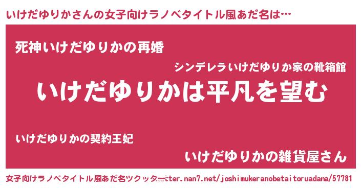 | 男性向けラノベタイトル風あだ名 | 『ダンジョンにいけだゆりかを求めるのは間違っているだろうか』 |