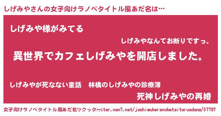 | 意味不明あだ名 | 『永久保存しげみや』『自称しげみや』 |