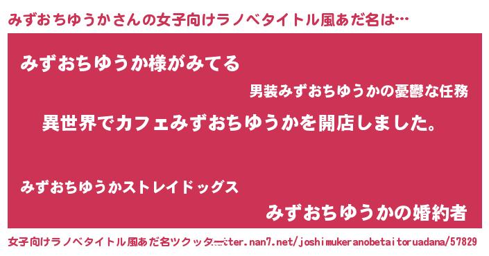 | 意味不明あだ名 | 『永久保存みずおちゆうか』 |