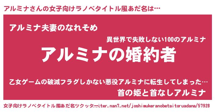 | 胡散臭い通販商品みたいなあだ名 | 『運命の人と巡り会える高級そうな絵画…その名も「アルミナ」』 |